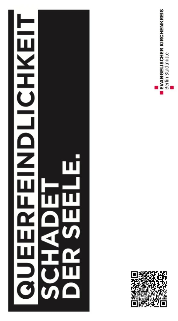 Verletzungen durch Ausgrenzung sind real. Wer glaubt, soll heilen, nicht verletzen. Denn Liebe tut der Seele gut – für alle.PNG Druckdatei zum Selber drucken, QR Code führt zu einem Padlet, auf dem Informationen zum Thema gesammelte werden.